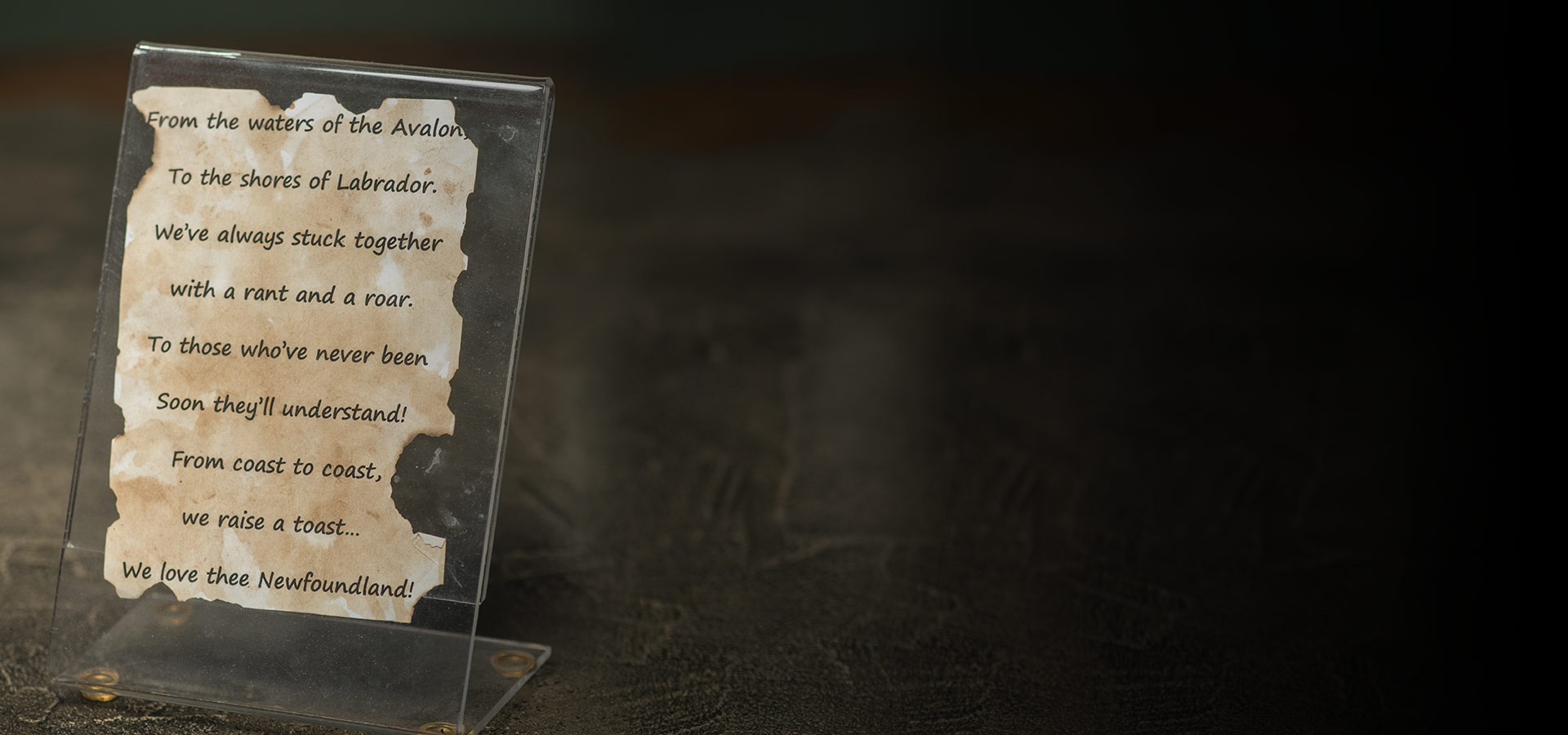 From coast to coast, we raise a toast, We love thee Newfoundland!”